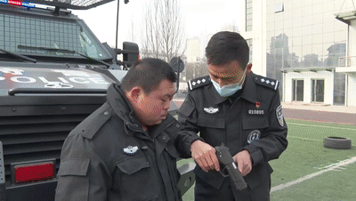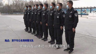 1月10日,史坤受邀来到西宁市公安局特警支队,在这里体验了一天的警察生活。换上警服后,他迅速进入了状态,在训练搜爆犬时,教官与史坤一起进行了坐、卧、立、叫的基本科目。看着搜爆犬听从自己的指令,史坤开心地比起了“剪刀手”。
